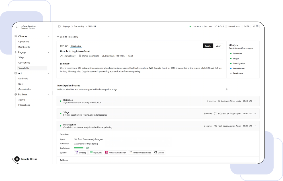 The alternative scenario looks different. You sleep through the night. At 8 a.m. you read a report from an integrated command center showing that an incident happened overnight, with the actions taken and the root cause already identified.